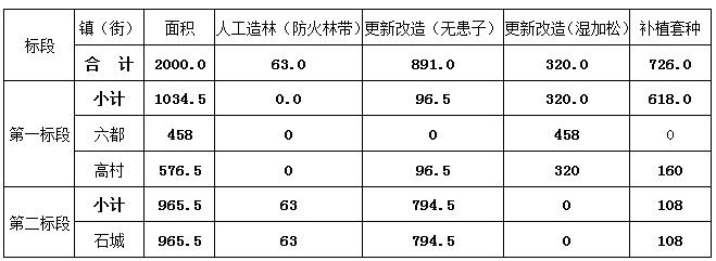 (二)、采購文件第二章 用戶需求書P7中“四、云安區(qū)2020年森林碳匯重點生態(tài)工程項目要求--(四)建設(shè)工程量”